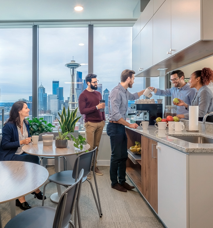 We provide break room solutions for offices, warehouses, manufacturing sites, schools, apartment communities, hotels, medical facilities, and government buildings across Seattle, Tacoma, and the Puget Sound area.